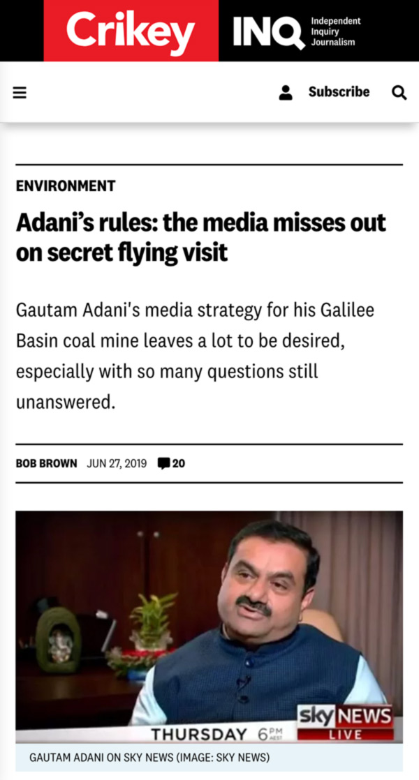 Read the full article by Bob Brown here: https://www.crikey.com.au/2019/06/27/adanis-rules-media-townsville/